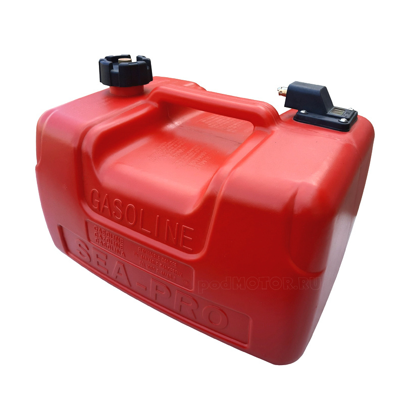 Переносной топливный бак из маслобензостойкой пластмассы. Вентиляционная пробка встроена в крышку заливной горловины. Контроль уровня топлива осуществляется с помощью интегрированного в крышку заливной горловины механического поплавкового указателя уровня. Бак оборудован Г-образным топливозаборником под топливный переходник со стандартной резьбой 1/4 NPT. Топливозаборник имеет сетчатый приемник для отфильтровывания механических примесей в топливе.